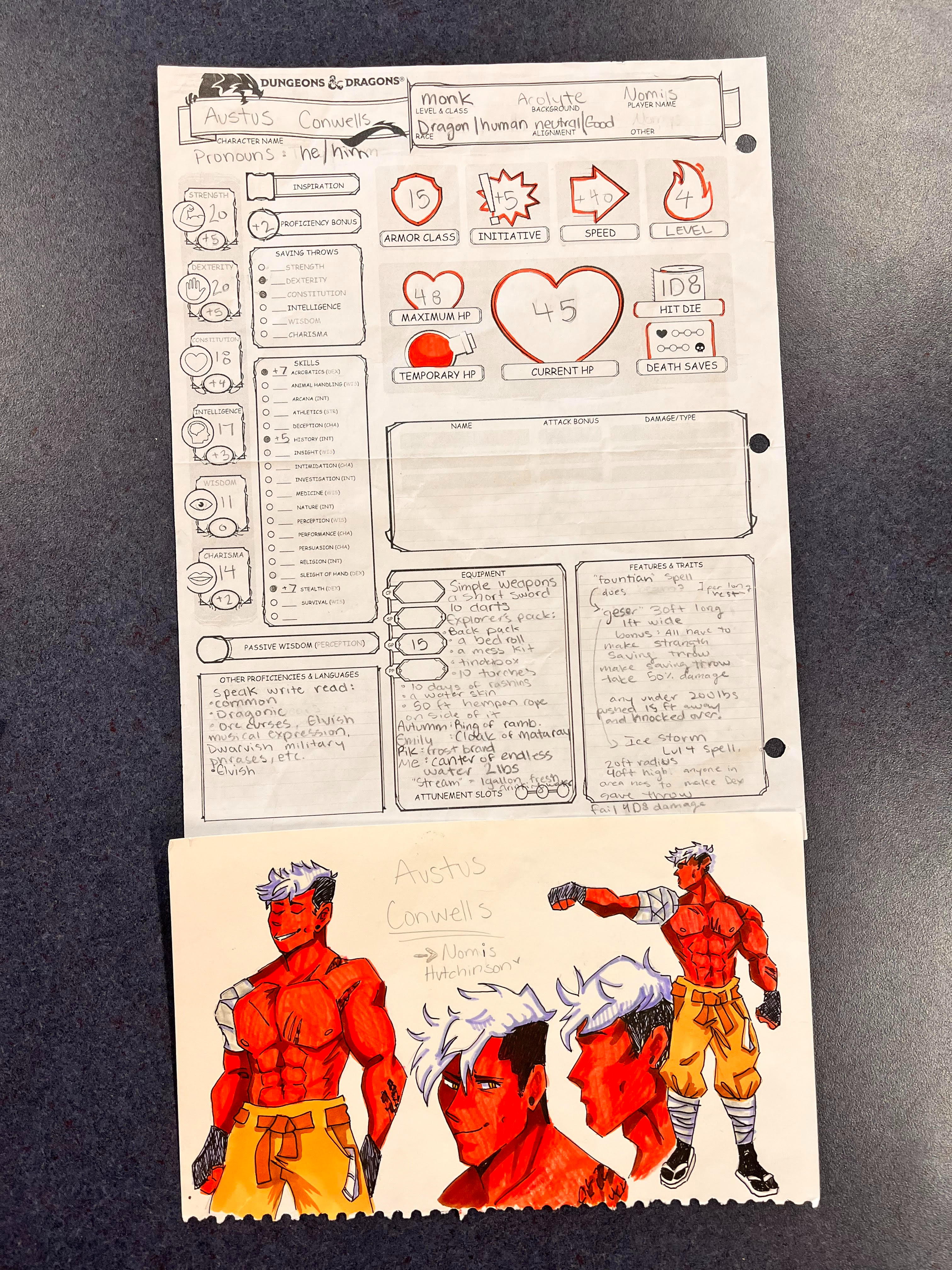 Example of a Character Sheet (reference was used for the art on Pinterest)